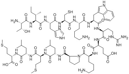 MCH-GENE-OVERPRINTED-POLYPEPTIDE-14 (RAT);MELANIN-CONCENTRATING HORMONE-GENE-OVERPRINTED-POLYPEPTIDE-14 (RAT);H-THR-ILE-HIS-CYS-LYS-TRP-ARG-GLU-LYS-PRO-LEU-MET-LEU-MET-OH;THR-ILE-HIS-CYS-LYS-TRP-ARG-GLU-LYS-PRO-LEU-MET-LEU-MET-OH;MGOP-14 (RAT);MGOP-14, rat (1);MGOP-14, rat (1)MCH-Gene-Overprinted-Polypeptide-14, rat;MCH-Gene-Overprinted-Polypeptide-14 (rat) MGOP-14 (rat) |