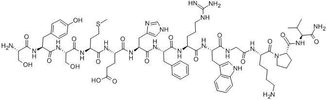 SYSMEHFRWGKPV-NH2;SER-TYR-SER-MET-GLU-HIS-PHE-ARG-TRP-GLY-LYS-PRO-VAL-NH2;[DES-AC] ALPHA-MELANOCYTE STIMULATING HORMONE, AMIDE;DES-AC-ALPHA-MSH;[DES-AC]-ALPHA-MSH, AMIDE;DES-ACETYL-ALPHA-MELANOCYTE STIMULATING HORMONE;(DES-ACETYL)-ALPHA-MSH;H-SER-TYR-SER-MET-GLU-HIS-PHE-ARG-TRP-GLY-LYS-PRO-VAL-NH2 |