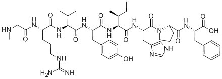 [SAR1]ANGIOTENSIN II, HUMAN;(SAR1)-ANGIOTENSIN II;(SAR1,PHE8) ANGIOTENSIN II;SAR-ARG-VAL-TYR-ILE-HIS-PRO-PHE;(SAR1)-ANGIOTENSIN II ACETATE;angiotensin II, Sar(1)-Ile(5)-;H-Sar-Arg-Val-Tyr-Ile-His-Pro-Phe-OH;[Sar1]angiotensin II【guinea pig】 |