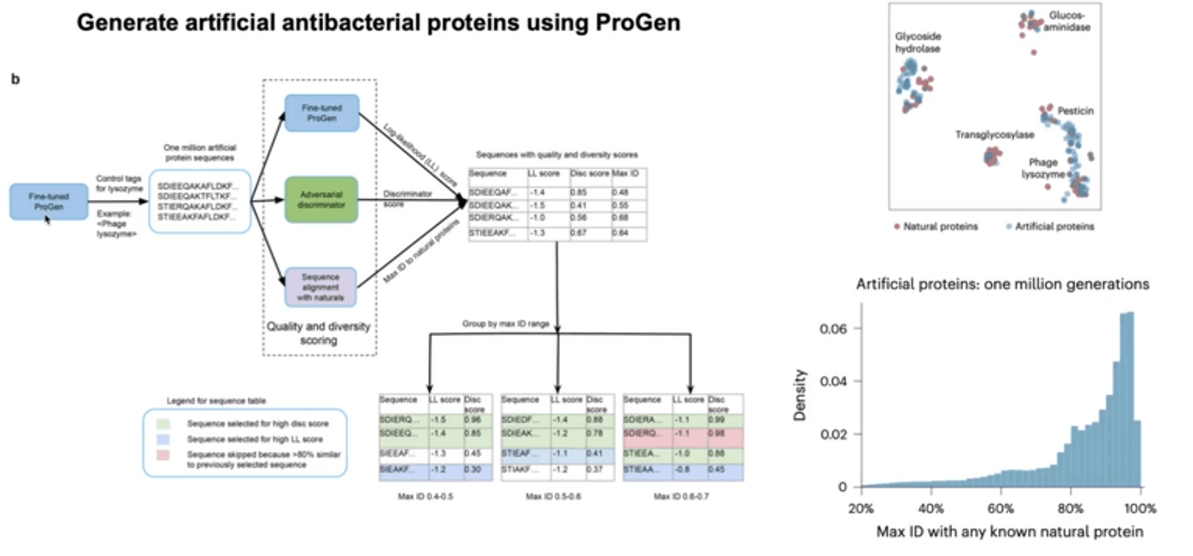 受到基于深度學(xué)習(xí)的自然語(yǔ)言模型的成功啟發(fā),該研究團(tuán)隊(duì)開發(fā)了 ProGen,這是一種蛋白質(zhì)語(yǔ)言模型,在數(shù)百萬(wàn)個(gè)原始蛋白質(zhì)序列上訓(xùn)練,可生成跨多個(gè)家族和功能的人造蛋白質(zhì)。