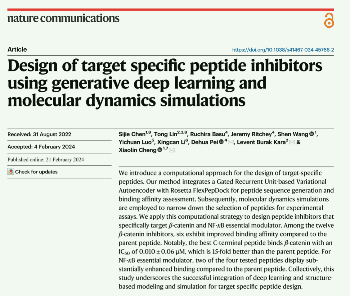 Nature Communications| 深度學(xué)習(xí)與分子動(dòng)力學(xué)模擬相結(jié)合的靶向特異性肽抑制劑設(shè)計(jì)