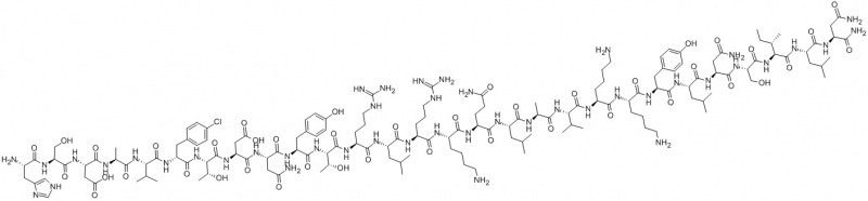 His-Ser-Asp-Ala-Val-p-chloro-D-Phe-Thr-Asp-Asn-Tyr-Thr-Arg-Leu-Arg-Lys-Gln-Leu-Ala-Val-Lys-Lys-Tyr-Leu-Asn-Ser-Ile-Leu-Asn-NH2 | H-His-Ser-Asp-Ala-Val-p-chloro-D-Phe-Thr-Asp-Asn-Tyr-Thr-Arg-Leu-Arg-Lys-Gln-Leu-Ala-Val-Lys-Lys-Tyr-Leu-Asn-Ser-Ile-Leu-Asn-NH2