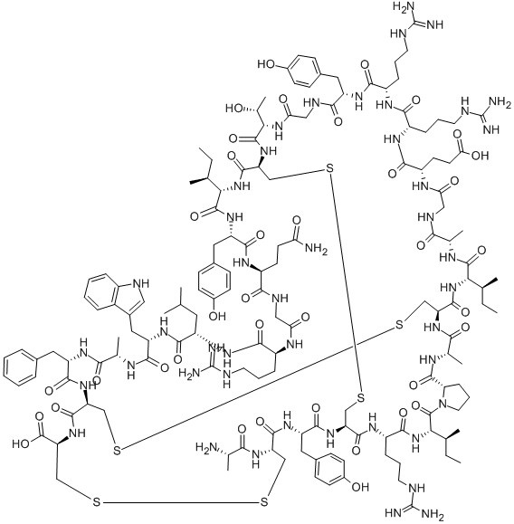 Asp-Cys-Tyr-Cys-Arg-Ile-Pro-Ala-Cys-Ile-Ala-Gly-Glu-Arg-Arg-Tyr-Gly-Thr-Cys-Ile-Tyr-Gln-Gly-Arg-Leu-Trp-Ala-Phe-Cys-Cys  | H-Asp-Cys-Tyr-Cys-Arg-Ile-Pro-Ala-Cys-Ile-Ala-Gly-Glu-Arg-Arg-Tyr-Gly-Thr-Cys-Ile-Tyr-Gln-Gly-Arg-Leu-Trp-Ala-Phe-Cys-Cys-OH