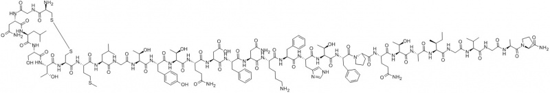Cys-Gly-Asn-Leu-Ser-Thr-Cys-Met-Leu-Gly-Thr-Tyr-Thr-Gln-Asp-Phe-Asn-Lys-Phe-His-Thr-Phe-Pro-Gln-Thr-Ala-Ile-Gly-Val-Gly-Ala-Pro-NH2Disulfidebridges:1-7 | H-Cys-Gly-Asn-Leu-Ser-Thr-Cys-Met-Leu-Gly-Thr-Tyr-Thr-Gln-Asp-Phe-Asn-Lys-Phe-His-Thr-Phe-Pro-Gln-Thr-Ala-Ile-Gly-Val-Gly-Ala-Pro-NH2Disulfidebridges:1-7 |