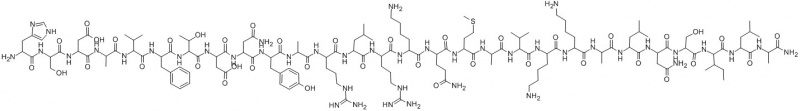 HIS-SER-ASP-ALA-VAL-PHE-THR-ASP-ASN-TYR-ALA-ARG-LEU-ARG-LYS-GLN-MET-ALA-VAL-LYS-LYS-ALA-LEU-ASN-SER-ILE-LEU-ALA-NH2 HIS-SER-ASP-ALA-VAL-PHE-THR-ASP-ASN-TYR-ALA-ARG-LEU-ARG-LYS-GLN-MET-ALA-VAL-LYS-LYS-ALA-LEU-ASN-SER-ILE-LEU-ALA-NH2 H-HIS-SER-ASP-ALA-VAL-PHE-THR-ASP-ASN-TYR-ALA-ARG-LEU-ARG-LYS-GLN-MET-ALA-VAL-LYS-LYS-ALA-LEU-ASN-SER-ILE-LEU-ALA-NH2 [ALA11,22,28]VIP (ALA11,22,28)-VIP (HUMAN, BOVINE, PORCINE, RAT) [ALA11,22,28]VIP, HUMAN, PORCINE, RAT H-His-Ser-Asp-Ala-Val-Phe-Thr-Asp-Asn-Tyr-Ala-Arg-Leu-Arg-Lys-Gln-Met-Ala-Val-Lys-Lys-Ala-Leu-Asn-Ser-Ile-Leu-Ala-NH2 M.W. 3160.65 C139H231N43O39S (Ala11 (Ala11?22?28)-Aviptadil (Ala11?22?28)-VIP (huMan, Mouse, rat) |