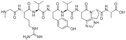 SAR-ARG-VAL-TYR-VAL-HIS-PRO-ALA-OH;SAR-ARG-VAL-TYR-VAL-HIS-PRO-ALA;[SAR1,VAL5, ALA8]ANGIOTENSIN II, HUMAN;(SAR1,VAL5,ALA8)-ANGIOTENSIN II;SARALASIN;[sar1, val5, ala8]-angiotensin ii acetate hydrate;[Sar1, Val5, Ala8]-AngiotensinII hydrate acetate salt;M.W.912.05 C42H65N13O10 |