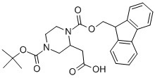 4-Boc-1-Fmoc-2-Piperazine acetic acid;2-(1-(((9H-Fluoren-9-yl)methoxy)carbonyl)-4-(tert-butoxycarbonyl)piperazin-2-yl)aceticacid;N-4-BOC-N-1-FMOC-2-PIPERAZINE ACETIC ACID;1-FMOC-4-BOC-PIPERAZINE-2-ACETIC ACID;1,4-Piperazinedicarboxylic acid, 2-(carboxymethyl)-, 4-(1,1-dimethylethyl) 1-(9H-fluoren-9-ylmethyl) ester;N-4-(Tert-Butoxy)Carbonyl N-1-(9H-Fluoren-9-yl)MethOxy]Carbonyl 2-piperazine Acetic Acid;2-CARBOXYMETHYL-PIPERAZINE-1,4-DICARBOXYLIC ACID 4-TERT-BUTYL ESTER 1-(9H-FLUOREN-9-YLMETHYL) ESTER;1-N-FMOC-4-N-BOC-PIPERAZINE-2-ACETIC ACID |