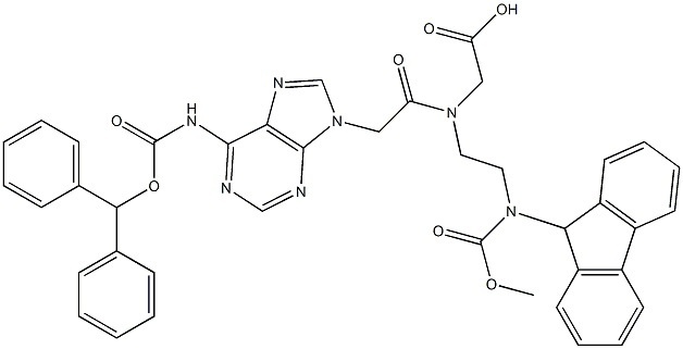 2-[2-[6-[[(二苯甲基氧基)羰基]氨基]-9H-嘌呤-9-基]-N-[2-(FMOC-氨基)乙基]乙酰氨基]乙酸;PNA-腺嘌呤單體;N-[[6-[[(二苯基甲氧基)羰基]氨基]-9H-嘌呤-9-基]乙?;?/span>]-N-[2-[[芴甲氧羰基]氨基]乙基]甘氨酸;PNA-腺嘌呤單體 / N- [2- [6 - [[(二苯基甲氧基)羰基]氨基] -9H-嘌呤-9-基]乙?;?/span>] -N- [2 - [[(9H-芴-9-基甲氧基)羰基]氨基]乙基]甘氨酸 |