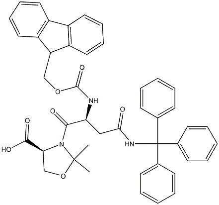 FMOC-ASN(TRT)-SER(PSIME,MEPRO)-OH;(4S)-3-[(2S)-2-[[(9H-Fluoren-9-ylmethoxy)carbonyl]amino]-1,4-dioxo-4-[(triphenylmethyl)amino]butyl]-2,2-dimethyl-4-oxazolidinecarboxylic acid;Fmoc-L-Asn(Trt)-L-Ser[PSI(Me,Me)Pro]-OH;(S)-3-[Nα-(9-Fluorenylmethyloxycarbonyl)-Nβ-trityl-L-asparaginyl]-2,2-dimethyloxazolidine-4-carboxylic acid;Fmoc-Asn(Trt)-Ser[Psi(Me,Me)Pro]-OH≥ 98% (HPLC);Fmoc-Asn(Trt)-Ser[Ψ(Me,Me)Pro]-OH;(4S)-3-[(2S)-2-({[(9H-fluoren-9-yl)methoxy]carbonyl}amino)-3-[(triphenylmethyl)carbamoyl]propanoyl]-2,2-dimethyl-1,3-oxazolidine-4-carboxylic acid;(9H-Fluoren-9-yl)MethOxy]Carbonyl Asn(Trt)-SerPsi(Me, Me)Pro-OH |