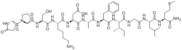 eledonepeptide;ELEDOISIN;GLP-PRO-SER-LYS-ASP-ALA-PHE-ILE-GLY-LEU-MET-NH2;5-oxo-l-prolyl-l-prolyl-l-seryl-l-lysyl-l-aspartyl-l-alanyl-l-phenylalanyl-l-isoleucylglycyl-l-leucyl-l-methioninamide;PYR-PRO-SER-LYS-ASP-ALA-PHE-ILE-GLY-LEU-MET-NH2;PYR-PSKDAFIGLM-NH2;PGLU-PRO-SER-LYS-ASP-ALA-PHE-ILE-GLY-LEU-MET-NH2;ELEDOSIN
