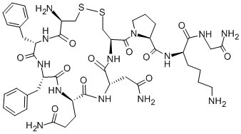 FELYPRESSIN;H-CYS-PHE-PHE-GLN-ASN-CYS-PRO-LYS-GLY-NH2, CYS1,6, CYCLIC;[PHE2,LYS8]-VASOPRESSIN;2-L-Phenylalanine-8-L-lysine-vasopressin;N-[5-Amino-1-(carbamoylmethylcarbamoyl)pentyl]-1-[19-amino-13,16-dibenzyl-10-(2-carbamoylethyl)-7-(carbamoylmethyl)-6,9,12,15,18-pentaoxo-1,2-dithia-5,8,11,14,17-pentazacycloicosane-4-carbonyl]pyrrolidine-2-carboxamide;2-(phenylalanine)-8-lyine vasopression;Octapressin;Phelypressin